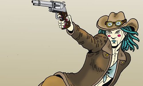 Designed by Emily Vitori, this version of Cowgirl Bly the Automaton will be the 2020 Symposium t-shirt design and program book cover.